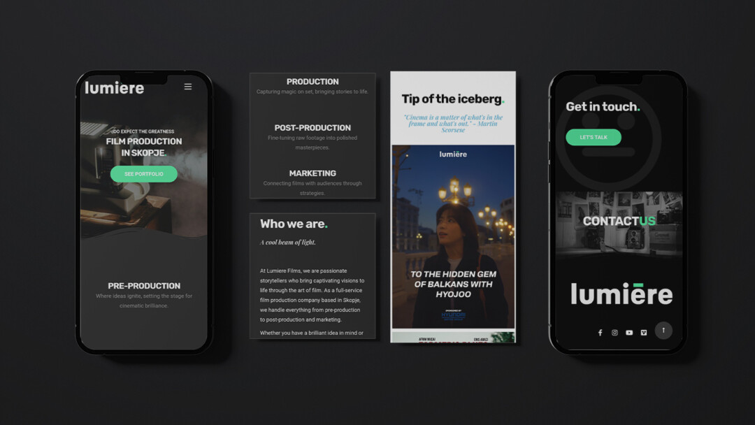 We developed a refined brand identity and redesigned the website with a focus on strong visuals, clear structure, and storytelling. The result was a cohesive brand and digital experience that better represents Lumiere Films and supports its positioning in the creative industry.