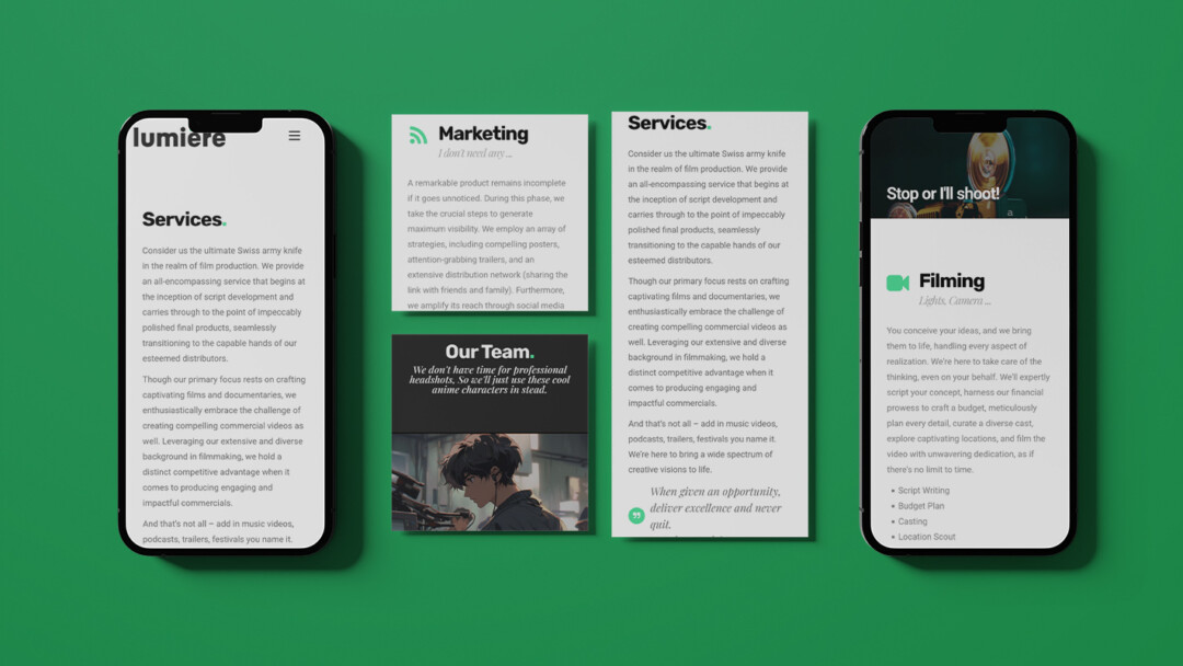 The existing brand and website did not fully capture Lumiere Films’ creative direction or industry expertise. Visual elements lacked consistency, and the website did not clearly communicate the studio’s work and services.