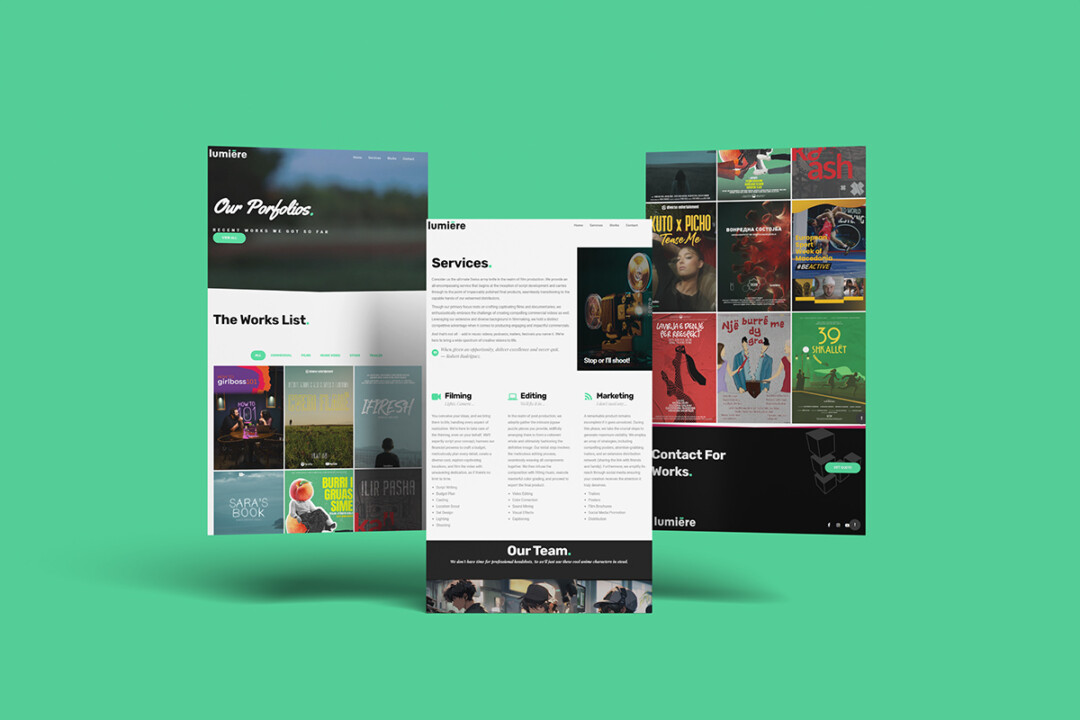 Lumiere Films needed a strong brand identity and a modern website to reflect its creative vision and cinematic quality. The focus was on creating a visual identity and digital presence that feels polished, expressive, and professional.
