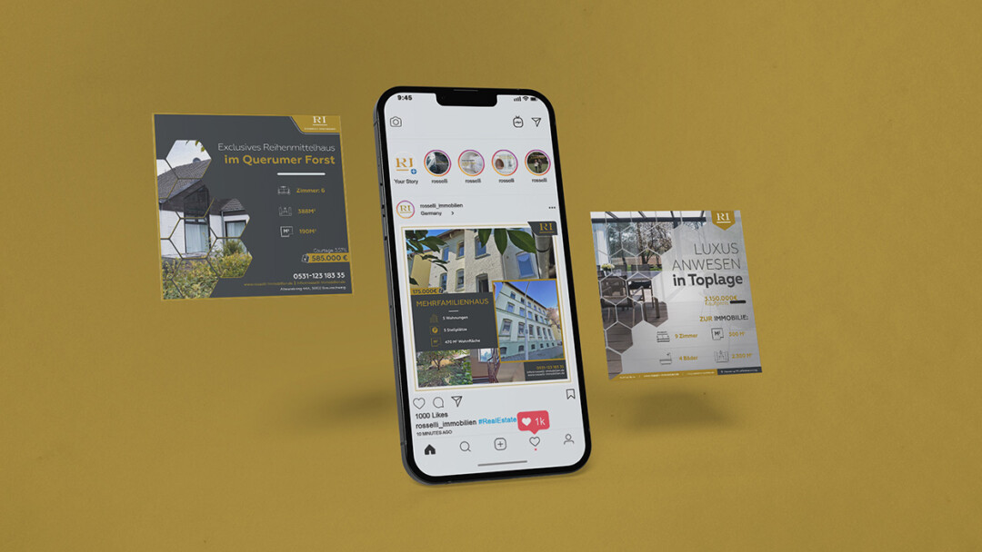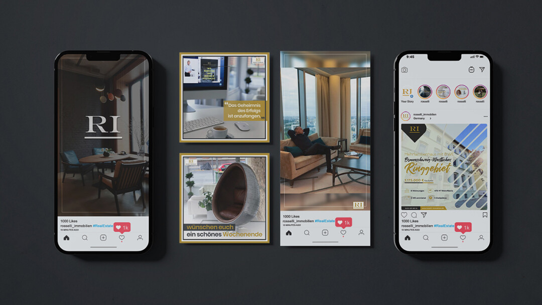 We developed a consistent visual system for social media, including branded graphic templates and motion graphics. The result was a cohesive, professional look across all channels, helping Rosselli Immobilien strengthen brand recognition and create more engaging, visually clear content.